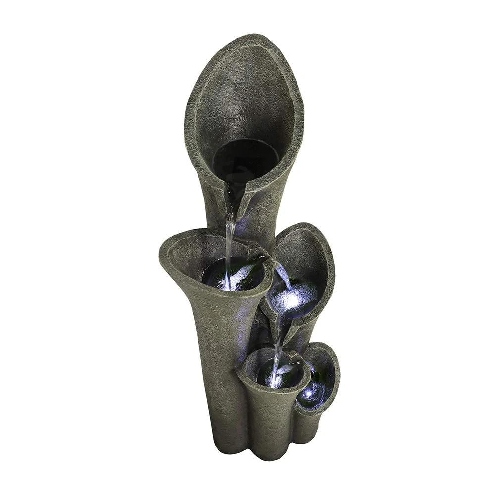 Elevate your outdoor sanctuary with the Custom Brand 5-Tier Faux Stone Outdoor Fountain. This stunning centerpiece combines the timeless elegance of cascading water with modern LED illumination. Crafted from durable, weather-resistant faux stone, it creates a serene atmosphere perfect for relaxation and entertaining. Easy to assemble and maintain, this fountain offers year-round beauty and the soothing sounds of flowing water for your garden, patio, or porch.