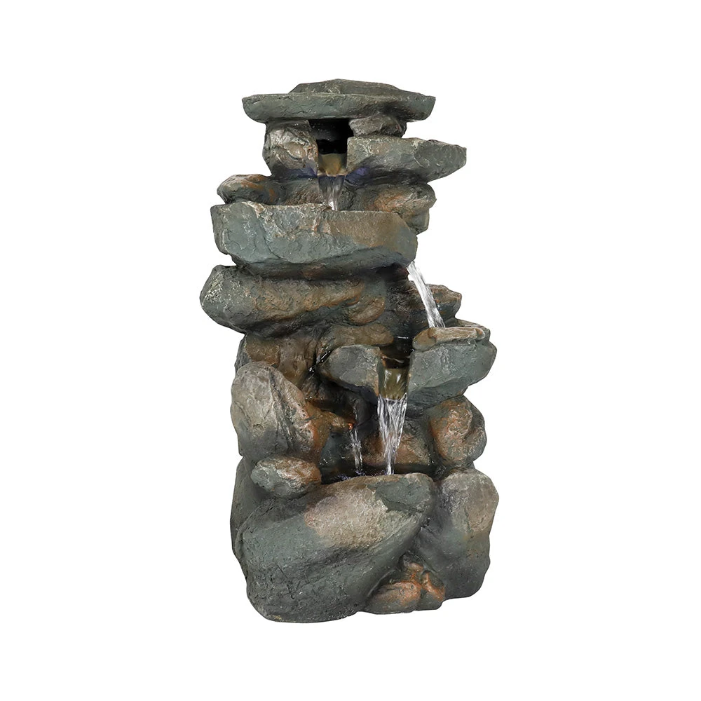 Resin Stacked Rock Indoor Tabletop Fountain with LED Lights-16″H